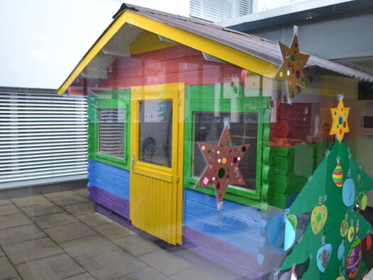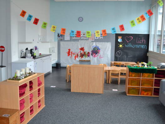 Für das Bringen und Holen der Kinder steht hinter dem Haus beim Eingang eine beschränkte Anzahl Parkplätze zur Verfügung.